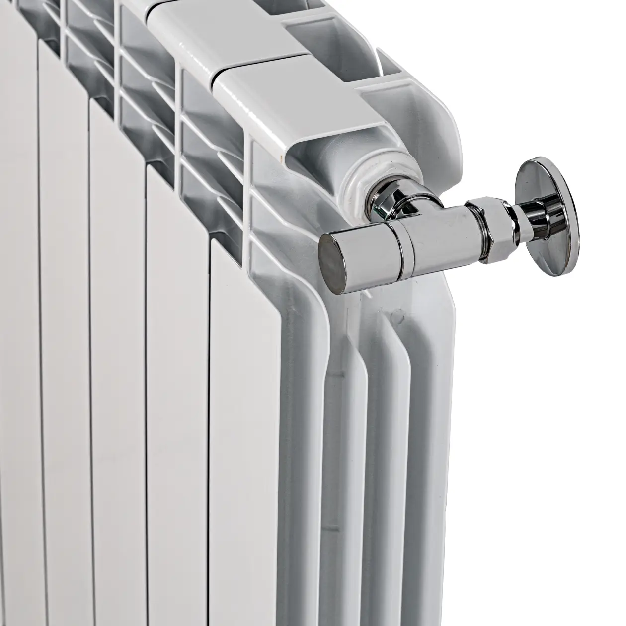 Chrome set with thermostatic valve and angled lockshield with connection for copper, multilayeror steel pipes, chrome finish with plastic knob in white finish.